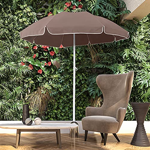 LARS360 Ombrellone da spiaggia regolabile in altezza, diametro 200 cm, ombrellone pieghevole con funzione inclinabile, protezione UV da giardino, marrone