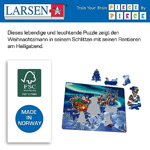 Larsen XM1 Babbo Natale e la Sua Slitta all'aurora boreale, Puzzle Incorniciato con 26 Pezzi