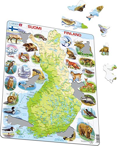 Larsen K75 Finlandia fisica con gli animali, edizione Finlandese, Puzzle Incorniciato con 78 pezzi