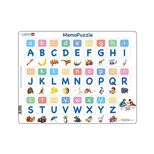 Larsen GP426 MemoPuzzle: L'alfabeto con 26 lettere maiuscole e minuscole, edizione Inglese, Puzzle Incorniciato con 52 pezzi
