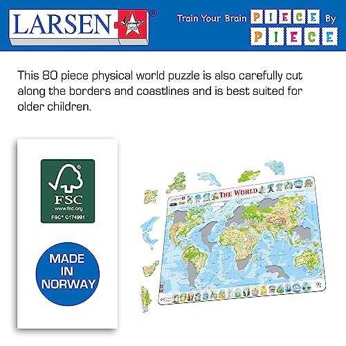 Larsen K4 La mappa fisica del mondo, edizione Inglese, Puzzle Incorniciato con 80 pezzi