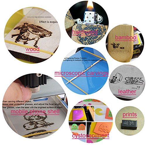 Il modello 1000mw incsione laser ha la potenza superiore. Il laser incisione si puo scolpire legno, bambù, cartone, avorio, pelle, plastica infiammabile e PCBA ecc.
