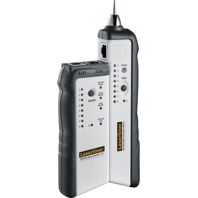 Dettagli tecnici Funzioni (Cvao) Passaggio Tipo prodotto Misura cavi Kit di strumenti di prova con trasmettitore e ricevitore per cavi LAN, SAT, TV, telefono, audio Il kit di strumenti di prova con trasmettitore e ricevitore analizza cavi LAN, SAT, TV, telefono e audio in reti elettriche senza tensione. I percorsi dei cavi in una profondità di misurazione fino a 5 cm possono essere tracciati senza contatto con il ricevitore. Durante l'identificazione dei cavi selezionati viene emesso un forte segnale di prova. Il dispositivo è dotato di un tester di continuità integrato e di numerosi accessori per il controllo dei più comuni collegamenti a spina (RJ 11, RJ 45, BNC, TV coassiale, adattatore F). Per il collegamento a qualsiasi conduttore sono disponibili morsetti di prova universali. Grazie alle cuffie aggiuntive l'utente può distinguere con precisione i segnali acustici. Con la torcia integrata, l'area di prova può essere ben illuminata. Testo tradotto automaticamente Caratteristiche