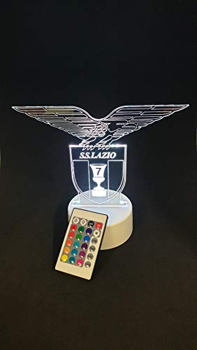 Lasermaniastore Lampada 3D Led RGB 7 colori SS LAZIO Coppa Italia con telecomando senza fili personalizzata