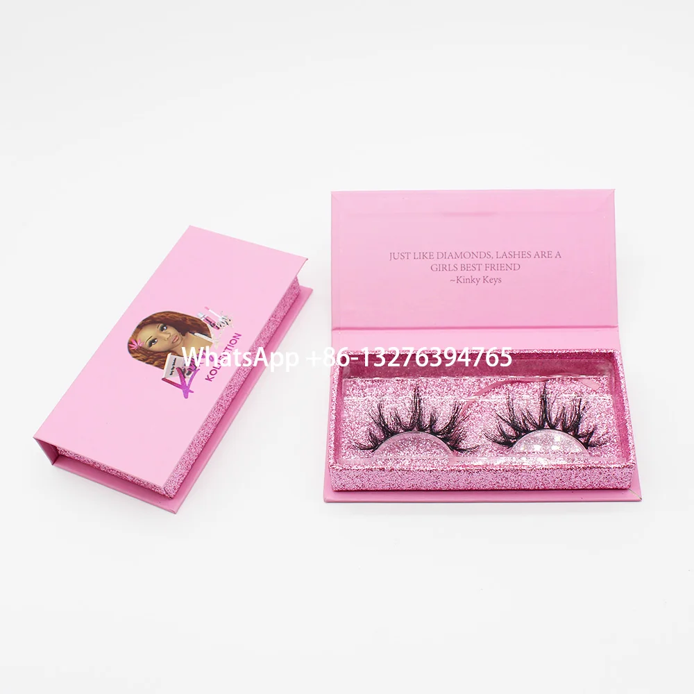 Lashes Eyelashes Mink Private Label Sweet Pink Cartoon Portrait Lash Cases Custom LashBox Packaging Free Plastic Tray