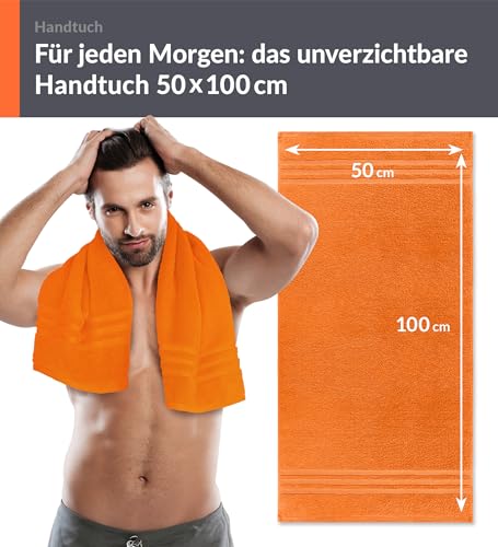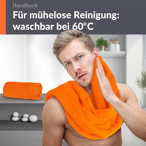 Ideale set di asciugamani di alta qualità, circa 50 x 100 cm per la casa o in viaggio. Sia per asciugare le mani o come piccoli asciugamani da doccia, gli asciugamani in spugna arancione sono sempre adatti.