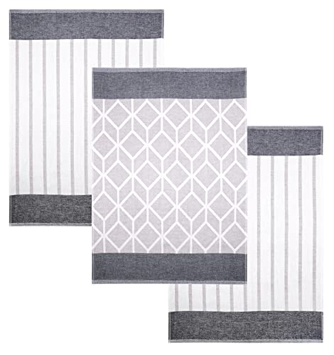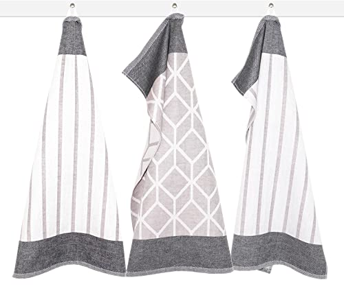 Lashuma Set di 3 strofinacci da cucina, 50 x 70 cm, motivo: quadrati, colore: grigio/marrone