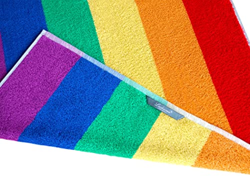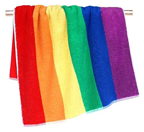Nessuno può resistere a questo telo da bagno colorato. Il panno in spugna a strisce in viola, blu, verde, giallo, arancione e rosso danno sempre un tocco visivo.