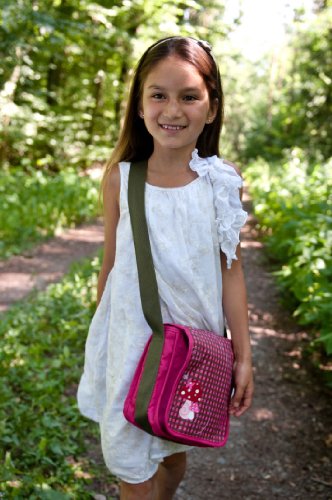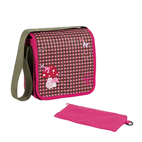 Lassig Borsa A Tracolla per Bambini, per Asilo o Tempo Libero con Mini Tasca Portaoggetti e Tasca con Zip, Moschettone e Targhetta Identificativa, Portabottiglie Integrato Messenger Bag, Funghetto, Mushroom Magenta