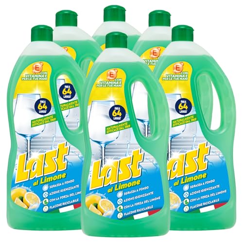 6x Last Detersivo Piatti Liquido al Limone Sgrassante Sporco e Incrostazioni con Vitamina E Formato da 950ml - 384 Lavaggi