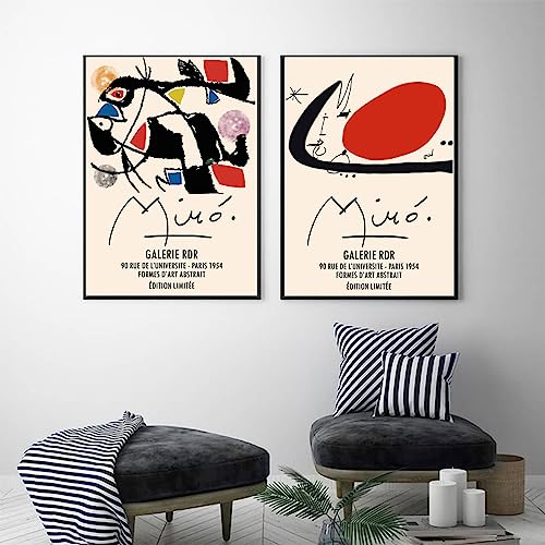 LATAFA Joan Miro Poster Joan Miro Stampe Moda Acquerello Arte della parete Joan Miro Dipinto su tela Joan Miro Immagini per soggiorno Decor 40x50cmx2 Senza cornice