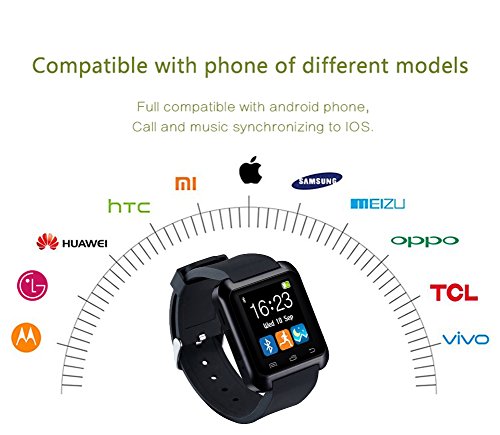 LaTEC SmartWatch bluetooth, orologio intelligente, fitness band, orologio telefono, orologio da polso con touch screen, pedometro per Android OS Smartphone (Nero)