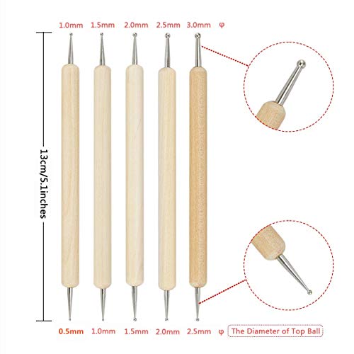 Embossing Stylus: strumenti a stilo per goffratura a doppia punta da 5 pezzi, il diametro di ogni stilo terminato è diverso, le gamme del diametro superiore della sfera dello stilo: 1 - 3 mm;