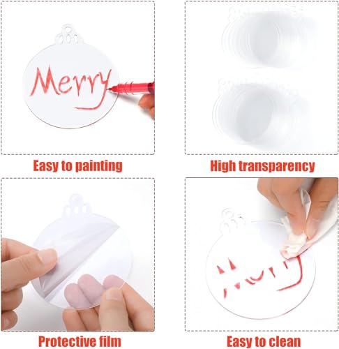 [Dimensioni] Diametro: 10 cm, include un totale di 60 palline piatte rotonde vuote e un rotolo di nastro rosso lungo 22 m, sufficiente per decorazioni natalizie sospese e necessità di sostituzione