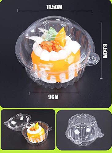LATERN 60 Pezzi Scatole Trasparenti per Cupcake, 11,5cm Scatole Individuali di Plastica per Cupcake Porta Cupcake Singolo Contenitore per Alimenti Incernierato con Coperchi per Grande Insalata Muffin