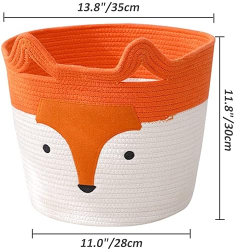 LATERN Portabiancheria in Corda di Cotone, Volpe Arancione Cestini Portaoggetti Pieghevoli Simpatico Portabiancheria con Animali Cestino per Giocattoli con Maniglie per Stanza Vestiti Bambini