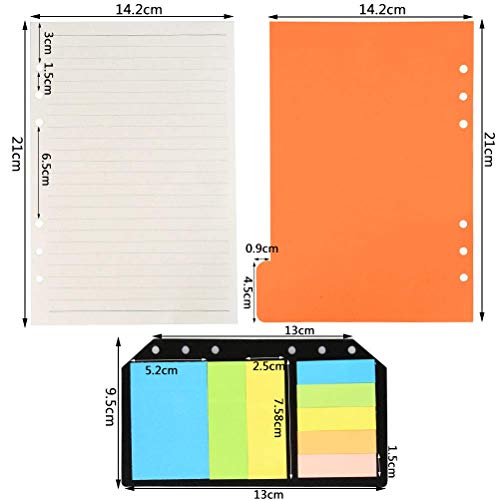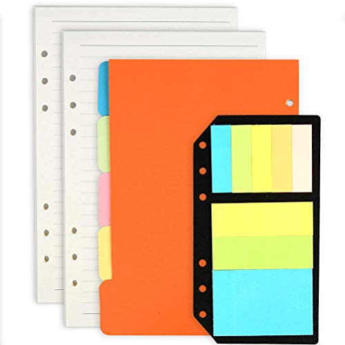 Pacchetto include: 2 fogli da 90 fogli Carta a righe A5, 5 fogli rivestiti di carta divisori A5, 5 colori 240 foglietti adesivi (montati su poli divisori neri)