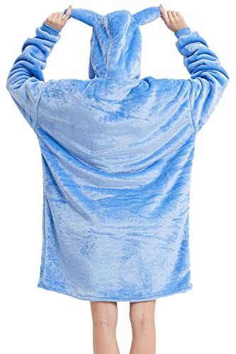 LATH.PIN - Felpa ampia a maglione con cappuccio, a forma di panda, unisex, da camera, microfibra, coperta di flanella, forma panda, carina, dolce, spessa, calda, con tasche grandi (1 - Blu scuro, S).