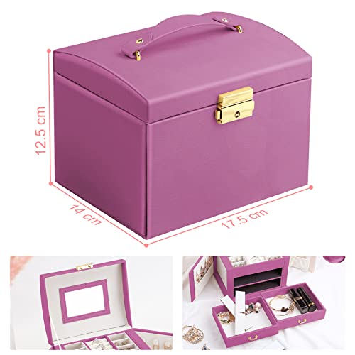 LATIT Scatola Portagioie Portagioielli Viaggio Donna Portagioie Donna da Camera 3 Strati con 2 Cassetti Cofanetto Portagioie Grande,per Anelli,Orecchini,Collane,Orologi,con Serratura e Chiave(fuxia)