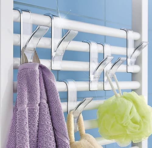LATRAT Confezione da 2 ganci radiatore termosifone per asciugamani, Bianco & Gancio scaldasalviette trasparente set 2 pezzi, Plastica- Riordina il tuo Bagno, Handy Picks