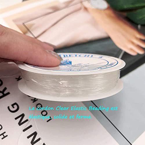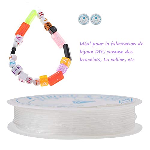 Fili per perline elastiche: il cordoncino elastico trasparente è elastico, solido e stabile. Potete tagliarlo in dimensioni adatte alle vostre esigenze. Il filo è trasparente, con una finitura lucida che non disturba né maschera l'aspetto dell'articolo finito.