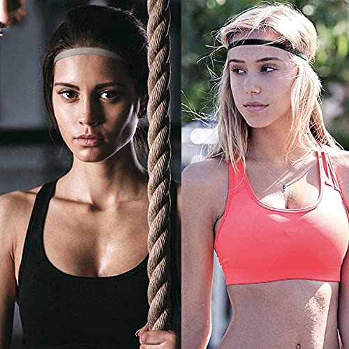 LATRAT 4 Pezzi Fasce per Capelli Sportive Elastiche Antiscivolo Spesse, Fascia Elastica, per Allenarmenti Yoga Calcio Jogging, per Donne e Uomo (Nero, Grigio)