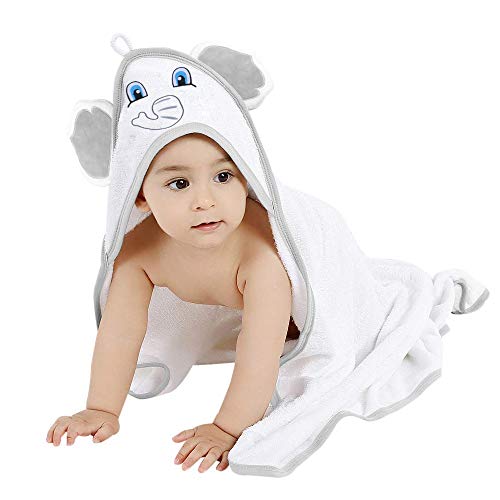 【Perfetti per i regali Baby Shower】 Questi asciugamani con cappuccio presentano graziosi motivi animali e ricami a forma di elefante, che rendono divertente il bagno per bambini o bambine, è un grande regalo per i nuovi i genitori.