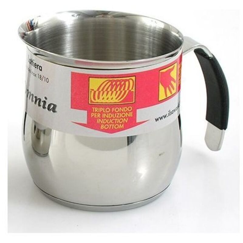 LATTIERA OMNIA ILSA Funziona anche sui piani ad induzione Manico ergonomico rivestito in silicone antiscivolo Il triplo fondo permette di distribuire in modo uniforme il calore LATTIERA OMNIA ILSA acciaio inox 18/10 - triplo fondo per induzione e manico rivestito in silicone antiscivolo