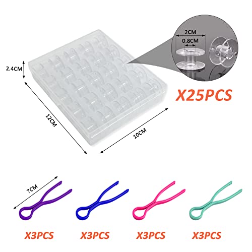 Set di lattine per macchina da cucire, 25 lattine trasparenti, 1 scatola trasparente e 12 pinze per lattina in quattro colori, filo universale con scatola portaoggetti