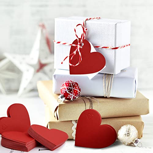 Laughhe 100PCS Etichette di Carta Cuore, Rosso Etichette Carta Kraft Etichette Regalo di San Valentino con 10m Corda, Tag Regalo di Carta a Forma di Cuore per Compleanno Matrimonio Decorazione Regalo