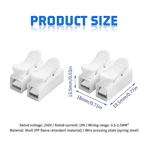 Laughhe Connettori a Molla, 100 Pezzi Ch-2 Block Connettori per Cavi Elettrici, Morsettiera a Molla Rapida, Morsettiere Elettriche Connettori a Striscia Set di Strisce per Cavi di Collegamento