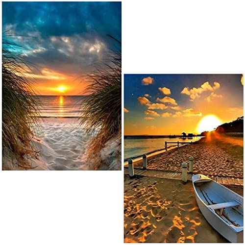 Laughhe 5D DIY Diamond Painting Kit Completo Drill, DIY Kit Pittura Diamante 5D Fai da Te Cristallo Strass Ricamo Arte per Bambini Adulti Decorazione Parete Casa 30x40cm (Mare+Spiaggia)