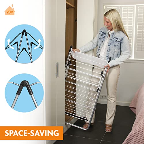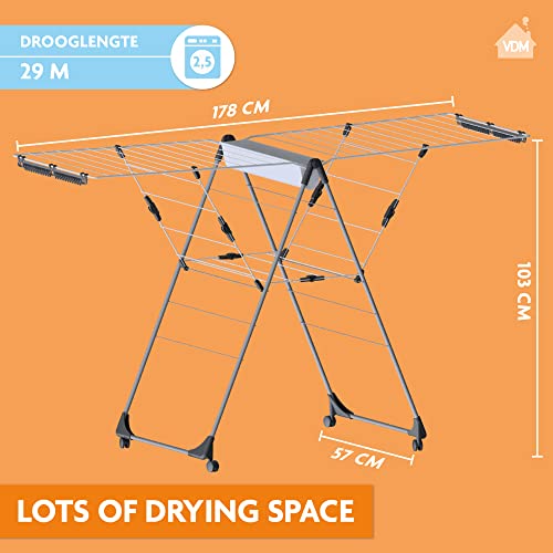 LaundrySpecialist stendibiancheria pieghevole Bobby - 29 m di lunghezza del filo per abiti - include 4 rotelle gratuite - biancheria lunga, asciugatrice ad ala per risparmiare spazio - Made in Italy
