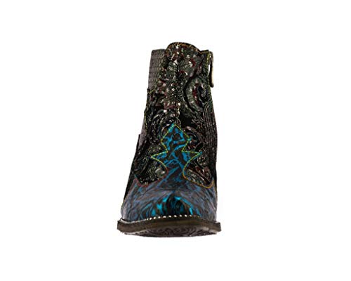Laura Vita, Ercwao 03, stivali da donna in pelle, scarpe da città, invernali, suola confortevole, stile originale fiori, blu, Blu (blu), 37 EU