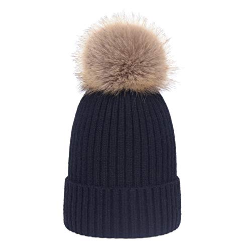 LAUSONS Cappelli a Maglia Donna Berretto Invernale con Pon Pon in Pelliccia Sintetica Nero