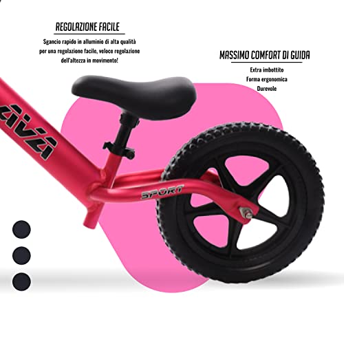 LAVA SPORT - Bike di allenamento leggero per bambini per ragazzi e ragazze e ragazze di 2, 3 e 5 anni - Senza pedale per bambini con manubrio e sedile regolabili - alluminio, pneumatici Eva - Rosa