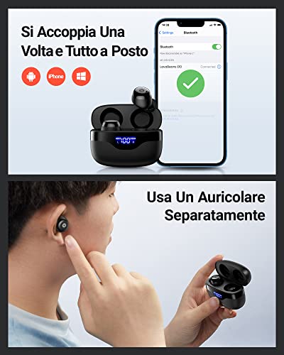 LavaBeans Auricolari wireless, auricolari Bluetooth, riproduzione 35H con display di alimentazione, IPX 8, impermeabili, con controllo touch stereo con microfono per iPhone, Samsung, Android, ecc.