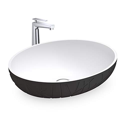 Lavabo di appoggio LEO in colata minerale (Solid Stone) - 50 x 40 x 12 cm - Senza piletta Pop-up, Nero/Bianco (opaco)