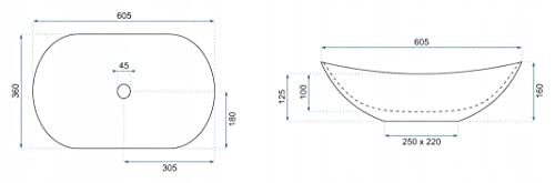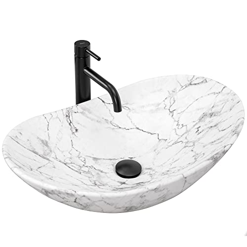 Rea Lavabo da appoggio Royal 60 Marmo Statuario Opaco Lavabo Bagno 605 x 360 x 160 mm Ceramica (Bianco, Imitazione Marmo)