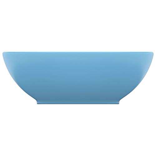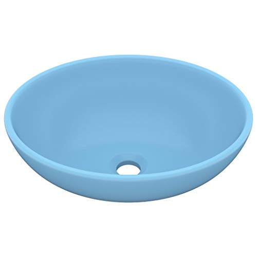 Lavabo da bagno di lusso, ovale, in ceramica, 40 x 33 cm, colore: azzurro opaco