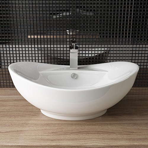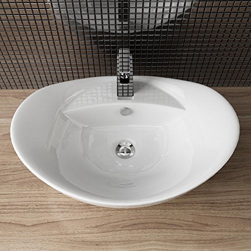 Lavabo in ceramica di design, lavabo per le mani, per il bagno degli ospiti, Waschbecken24 (59x39x21cm, Bianco / A82)