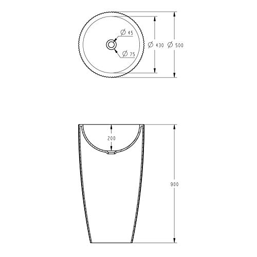 Lavabo freestanding TWZ316 di pietra solida (Solid Stone) - 50 x 50 x 90 cm - colore a scelta, Colore:Nero (opaco)