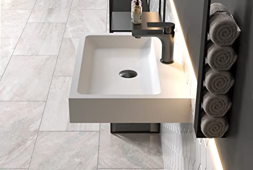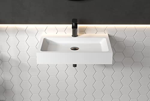 Lavabo a parete o da appoggio PB2142 in solid surface (Solid Stone) - bianco opaco - 60 x 42 x 10 cm