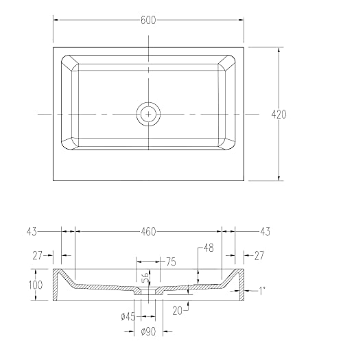 Larghezza: 60 cm, distanza del foro: 48 cm