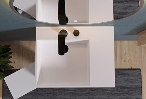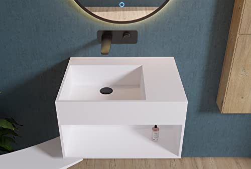 Lavabo sospeso o da appoggio PB2158 con vano portaoggeti (Solid Stone) - 60 x 46 x 45 cm - bianco opaco