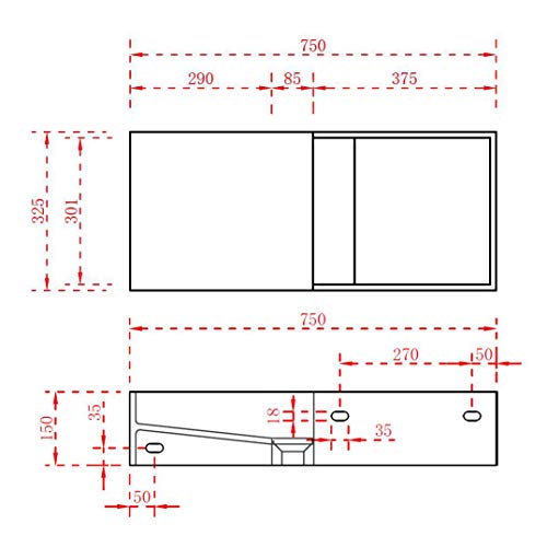Lavabo sospeso o da appoggio con portaoggetti TWG08 - Solid Surface - 75 x 32,5 x 15 cm