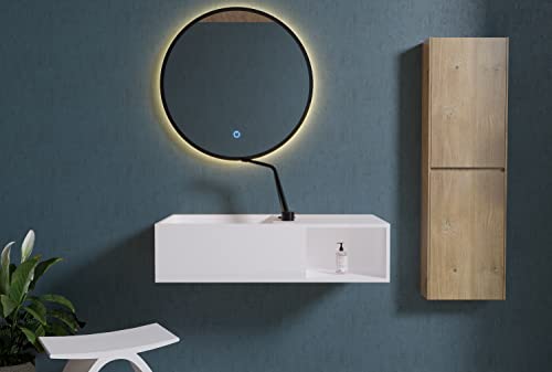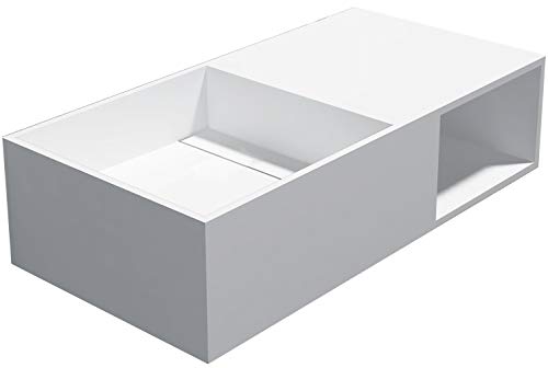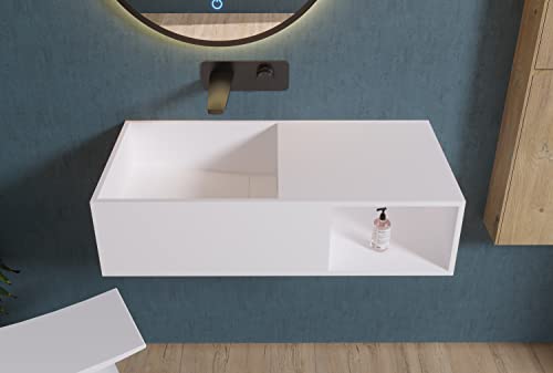 Lavabo sospeso con spazio accessori e piano d'appoggio PB2037-80 x 40 x 20cm in resina sintetica (Solid Stone)