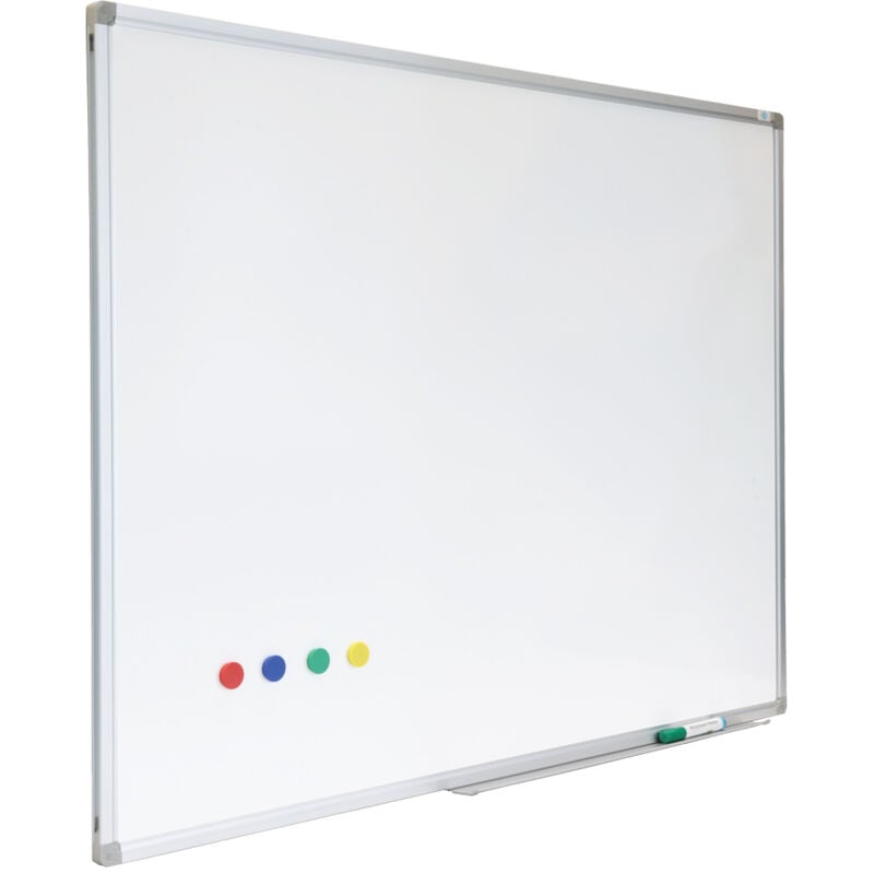 Una lavagna per portare gli interni del vostro ufficio a un livello superiore? Allora scegliete una lavagna premium! La superficie di scrittura di questa lavagna è realizzata in acciaio smaltato cancellabile a secco. È adatta a un uso molto intensivo. Lo strato di smalto è resistente ai graffi e di lunga durata. Inoltre, la lavagna ha un effetto magnetico che rende facile appendere gli appunti. Ideale per l'ufficio, la scuola o lo studio di casa. Lavagna bianca 60x90 cm Una lavagna magnetica è un complemento funzionale per il lavoro o la sala riunioni. La superficie bianca combinata con il bordo in alluminio argentato crea un aspetto professionale. La cornice in alluminio non solo conferisce alla lavagna un bell'aspetto, ma previene anche i danni e garantisce che l'inchiostro non finisca sulla parete. La lavagna è dotata di serie di un portapenne per i pennarelli e il cancellino. Combinate la lavagna con i magneti per appendere alla lavagna appunti su carta, foto o altre aggiunte.