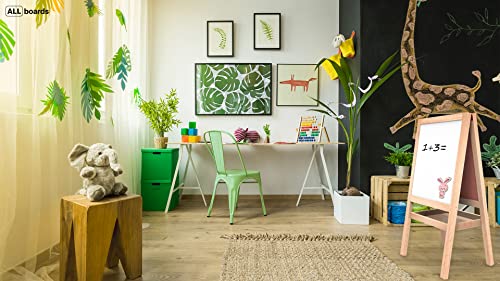 DOPPIA SUPERFICIE - la lavagna bifacciale per bambini KidsBoards ha due superfici: una superficie nera da gesso e una bianca magnetica. Questo garantisce la libertà di poter utilizzare la superficie bianca magnetica con pennarelli cancellabili a secco e la superficie nera con gessetti o pennarelli a gesso liquido.