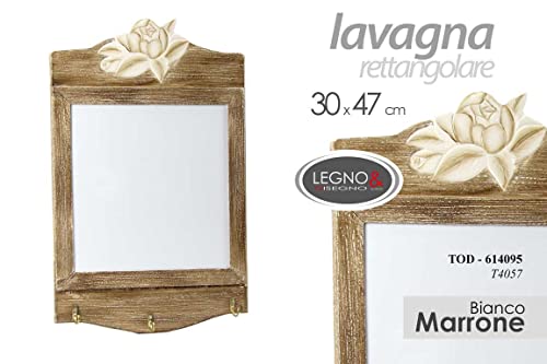 Lavagna lavagnetta da parete cancellabile in legno bianco-marrone decoro rose con 3 ganci 30 * 47 cm shabby chic TOD-614095